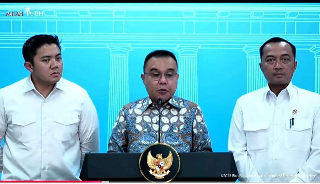 Ia hadir bersama Menteri Sekretaris Negara Prasetyo Hadi dan Sekretaris Kabinet Teddy Indra Wijaya.